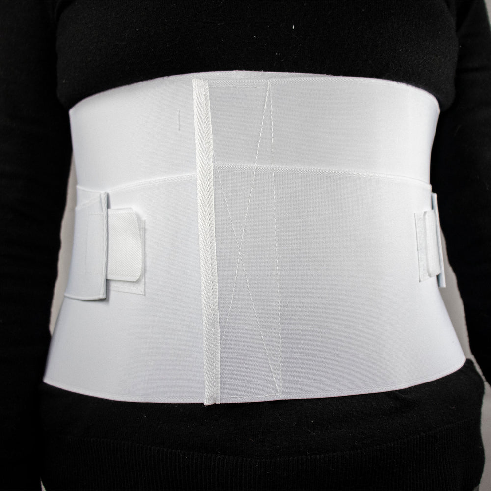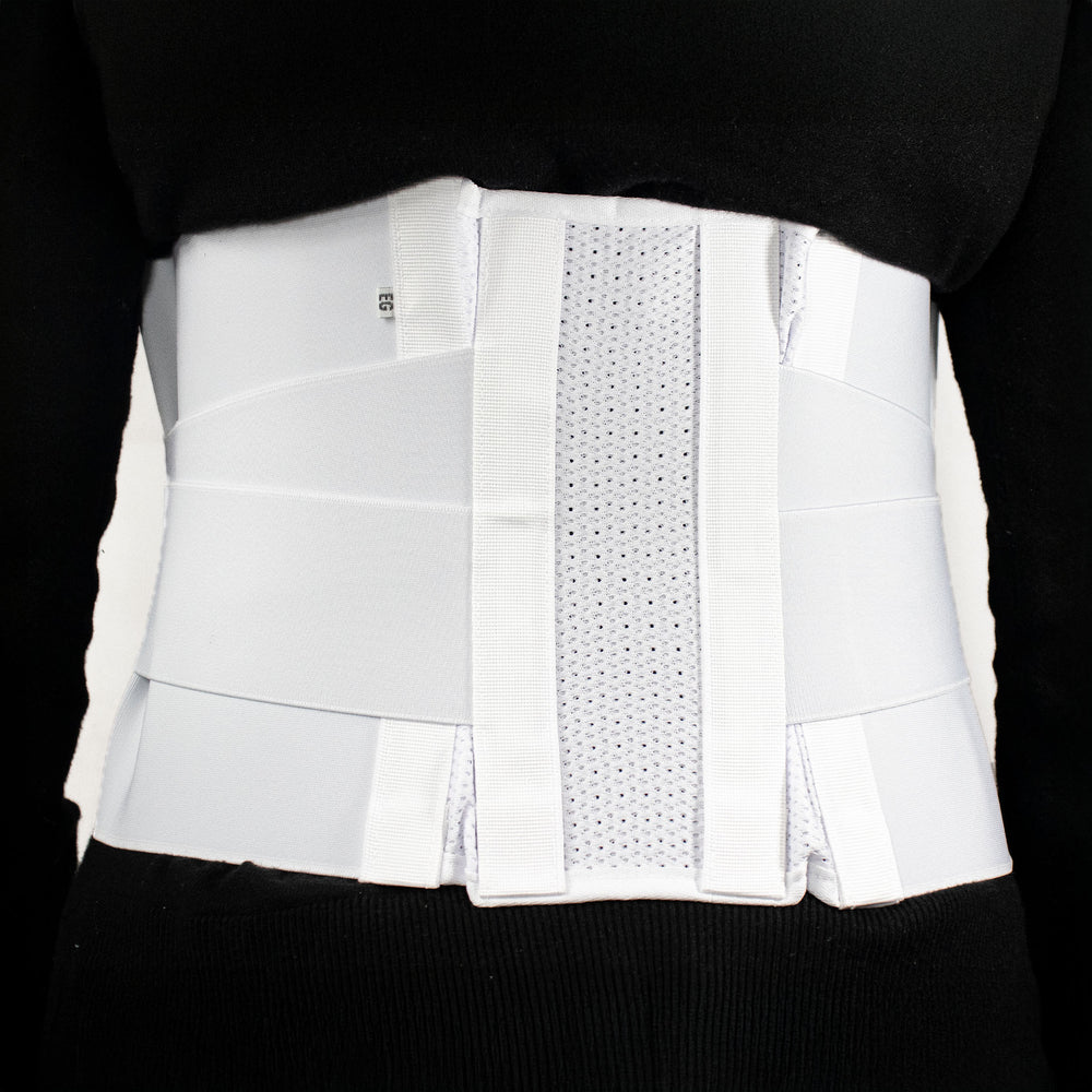 Faja sacrolumbar sencilla de talla extra grande en color blanco. Diseñada para proporcionar soporte moderado a la zona lumbar sin restringir el movimiento. Fabricada en material elástico con ajuste de velcro para mayor seguridad y confort.